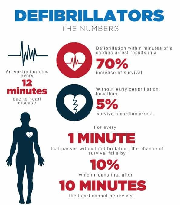 The Australian Resuscitation Council says “for every minute defibrillation is delayed their is a 10% reduction in survival”