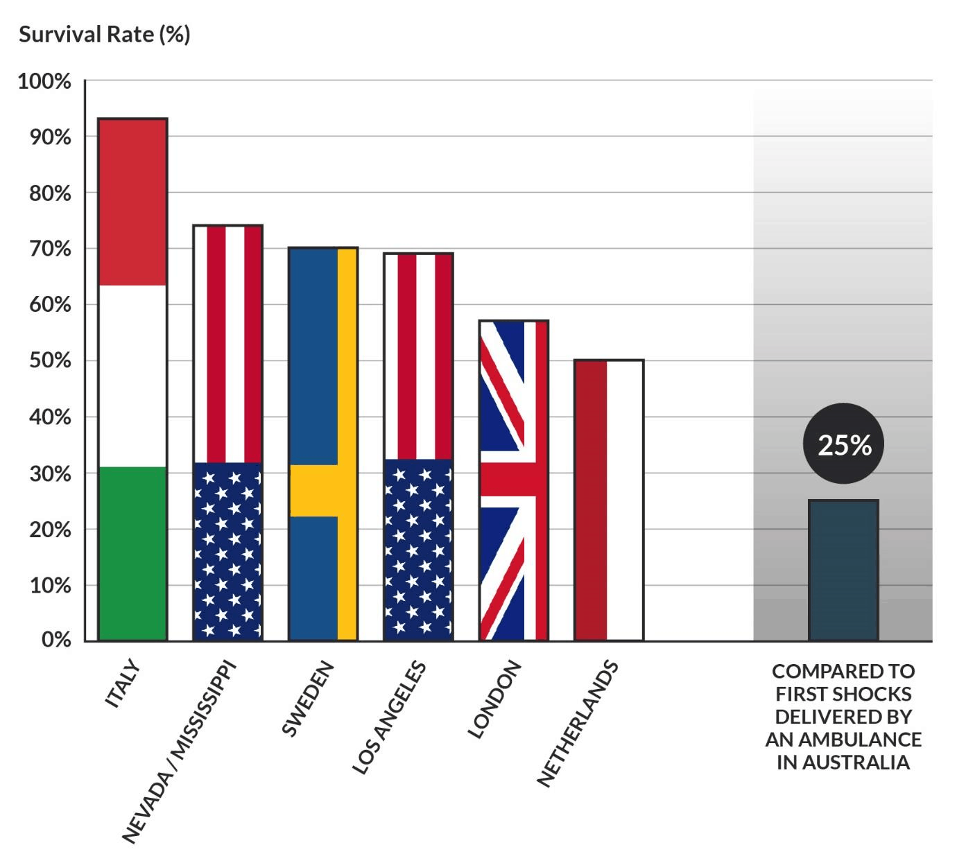 “Overseas Survival rates are higher because the “time to first shock” is less”