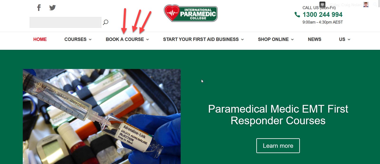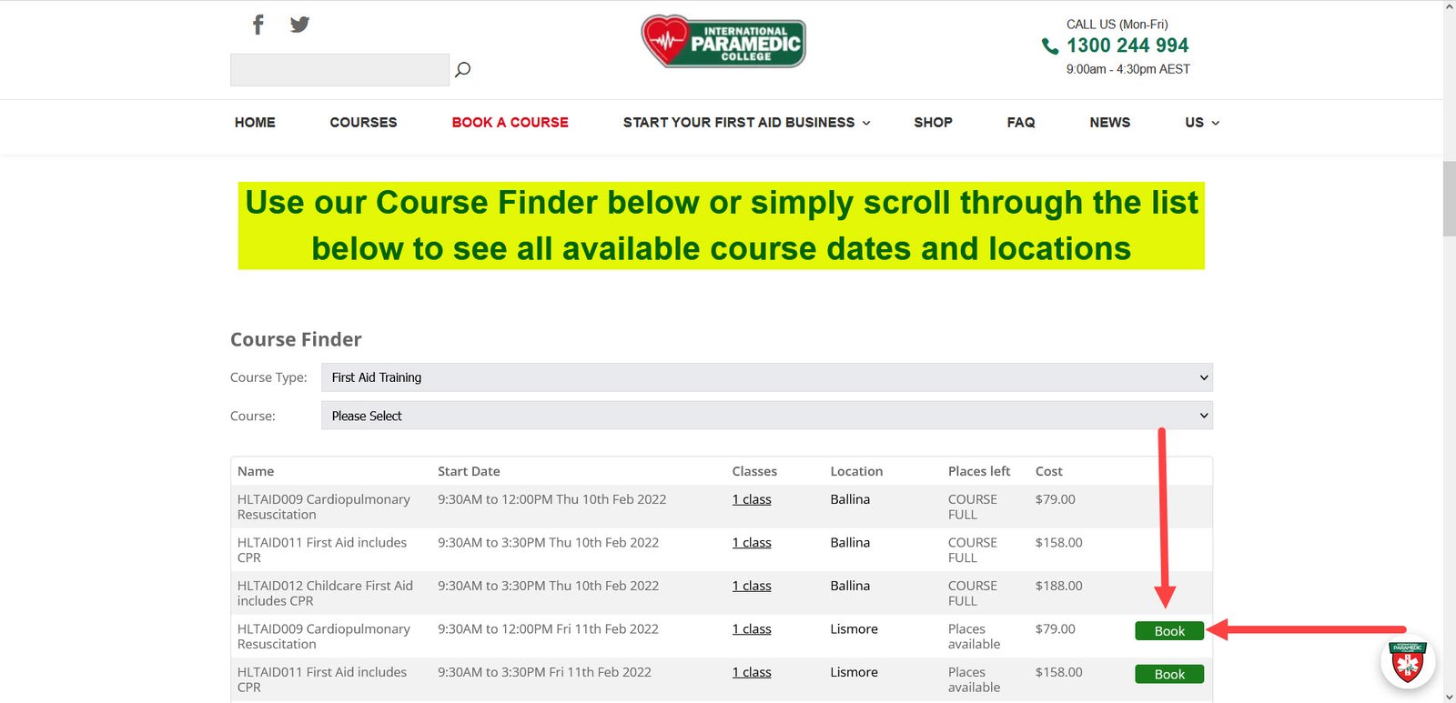 Go to our website homepage and click either of the following options to view our Public Course Dates and Locations.